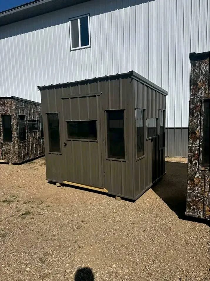 Multiple different sizes of Amish built deer blinds